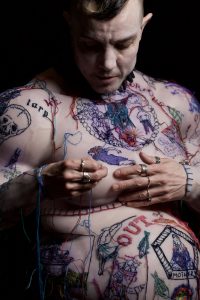 Pricklings is an interactive durational performance which stages the artist as trans saint, queer icon, fetish object, witch’s poppet, a luck charm, a ritual, a process, a test, a game.